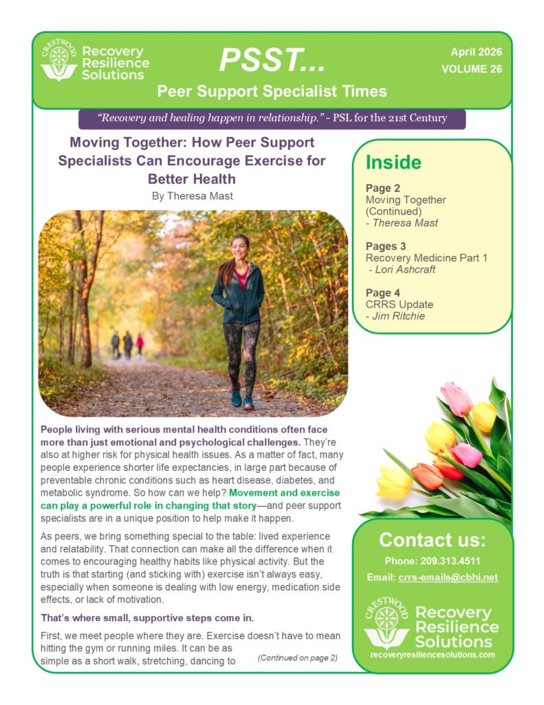 We’re so excited to bring you our first edition of the monthly “Peer Review.” We promise this won’t be a sleepy scholarly journal. We can assure you, however, we’ll make every effort to awaken you to valuable information and resources, helping you promote peer support services, as well as recovery, resilience, and wellness outcomes in […]